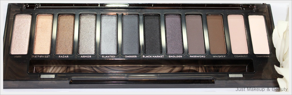 Tal como as outras Naked a paleta é composta por 12 sombras de tons neutros, desta vez mais escuros que permitem fazer looks mais carregados e intensos. Temos à disposição nesta paleta vários tipos de acabamento, temos sombras shimmer, acetinadas, metálicas e mate. Aqui podem ver uma breve descrição das sombras: