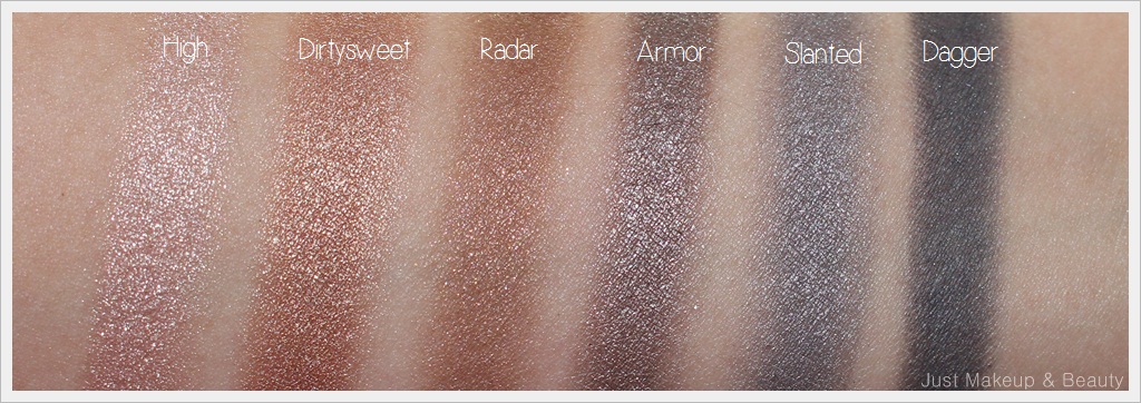 Gosto da combinação de tons e acabamentos que a UD escolheu. Esta paleta tem o tradicional preto e castanho mate que permitem intensificar qualquer look, tem também os tons mate de transição que são chave em qualquer maquilhagem esfumada e tem também tons intermédios como os bronze, roxos e cobre para darem o toque especial a qualquer maquilhagem.